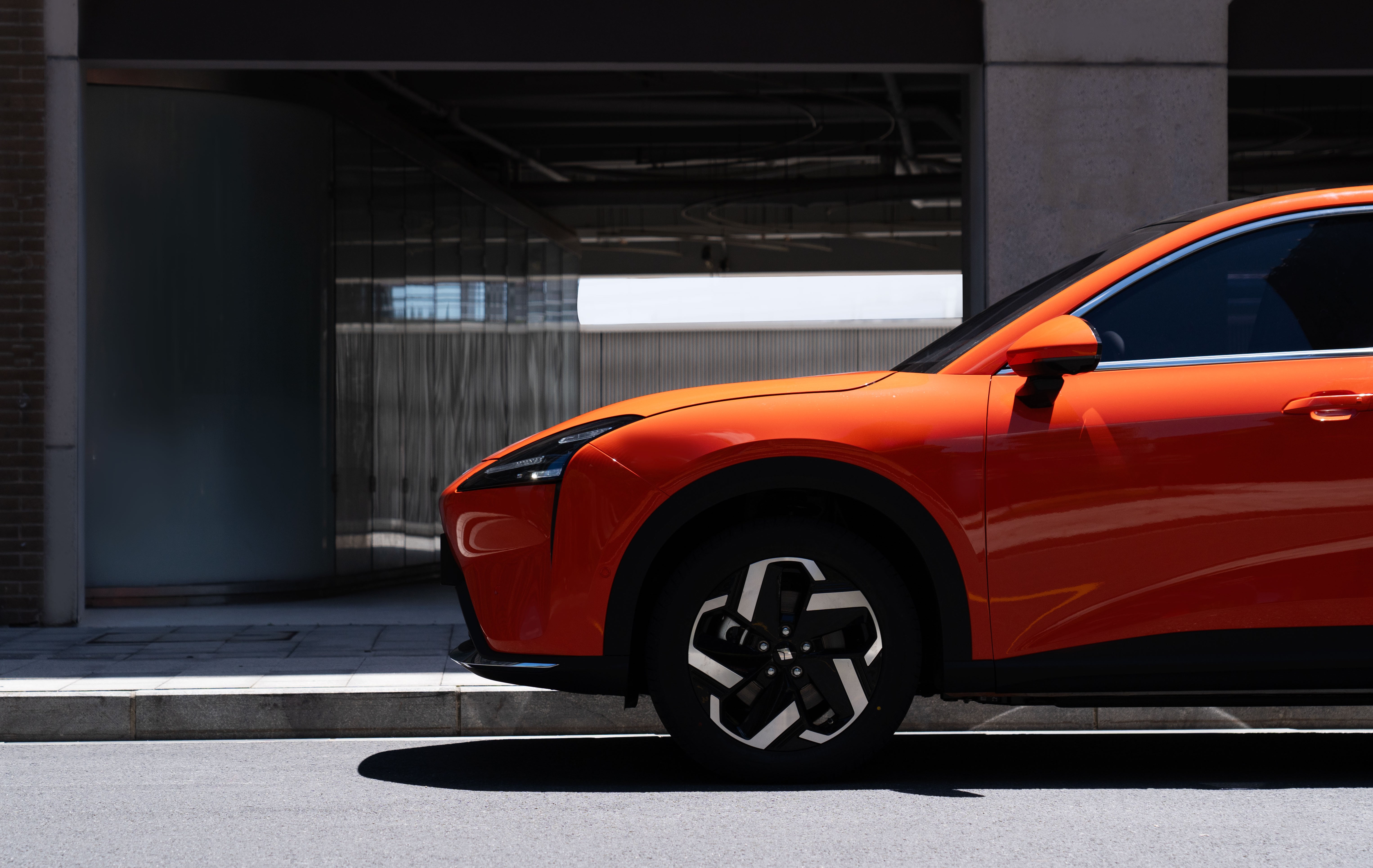 车身侧面的设计十分简洁,部分D柱使用了熏黑处理,营造出悬浮式车顶的视觉效果,即使没有隐藏式的车门把手,风阻系数依然优秀,仅为0.259。