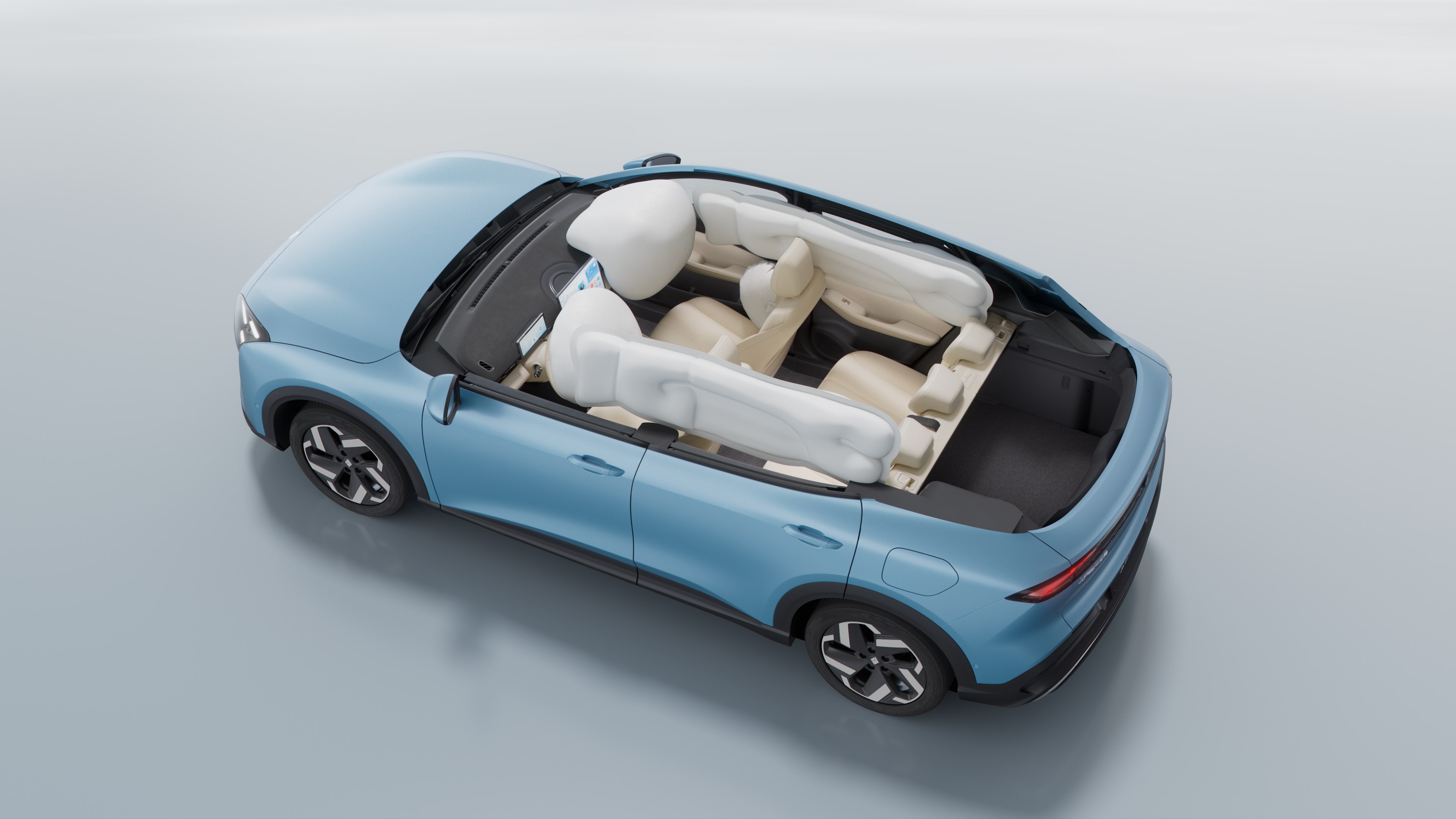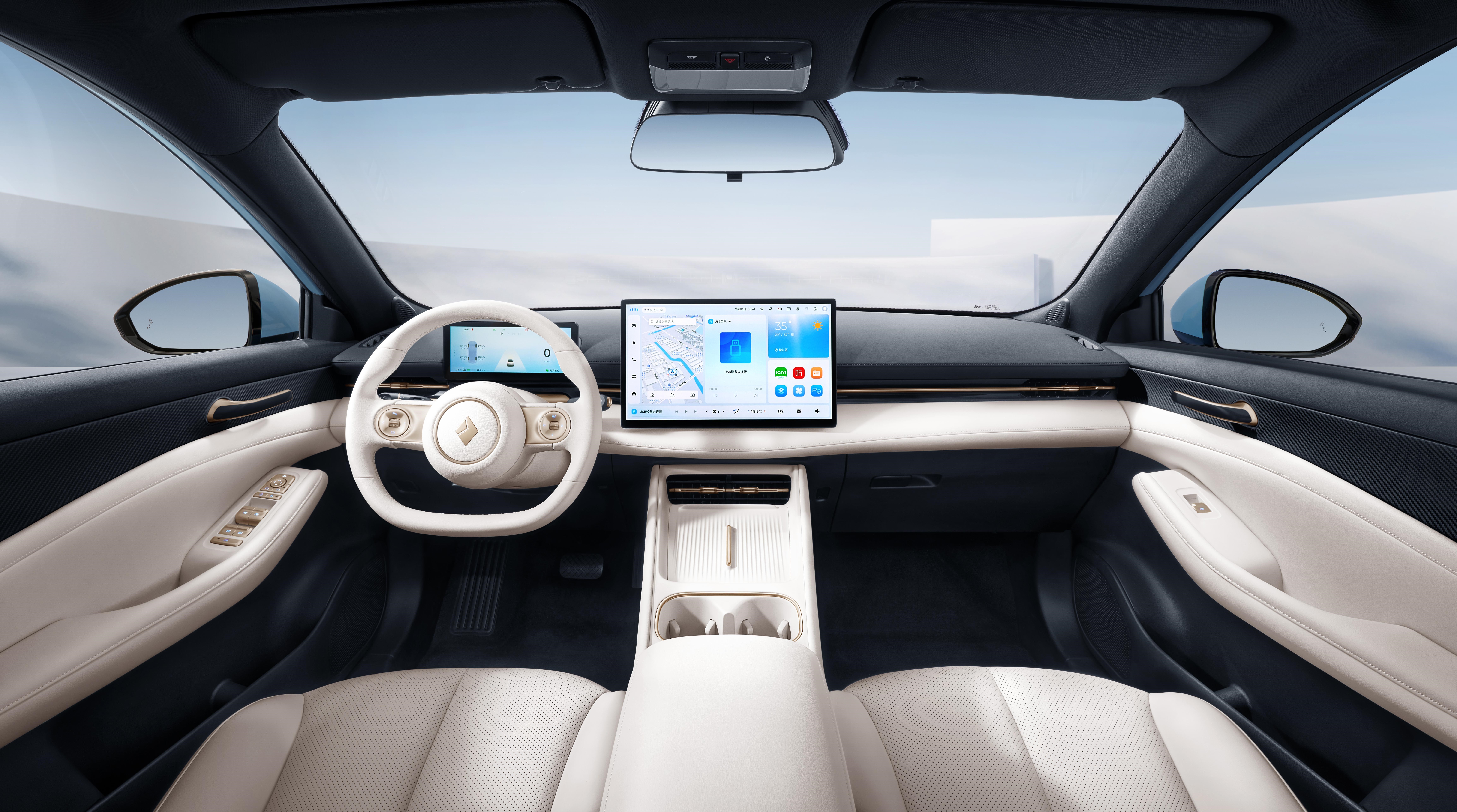 进入到车内,新车实现了同级最大内饰软包覆面积,在标配的主驾座椅6向电动调节基础上,纯电版车型和部分插混版车型可选配舒适选装包(前排座椅通风加热,副驾座椅电动调节)。
